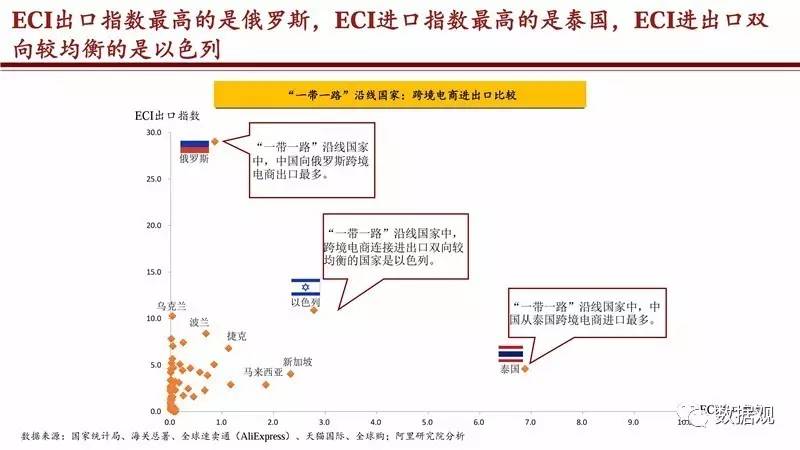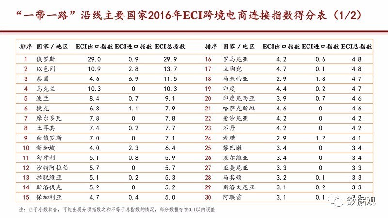 中国与“一带一路”沿线国家ECI跨境电商连接指数Top10国家是:俄罗斯、以色列、泰国、乌克兰、波兰、捷克、摩尔多瓦、土耳其、白俄罗斯、新加坡。