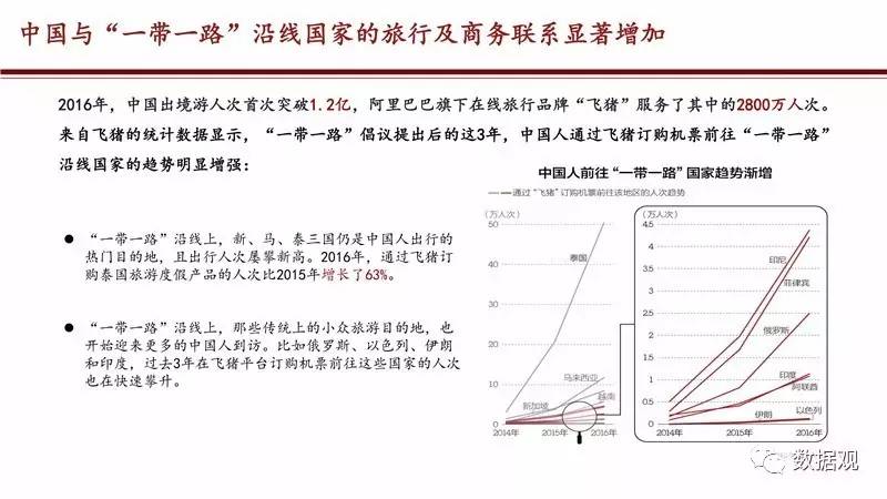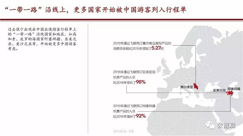此外,除了商品流通,“一带一路”沿线国家之间的民间交流和文化交流也更加紧密。过去很少出现在中国出境游客行程单上阿塞拜疆、亚美尼亚、爱沙尼亚等地国家,也开始被更多中国游客考虑,飞猪数据显示,2016年前往亚美尼亚和阿塞拜疆的人次分别比2014年增加了98%和92%。