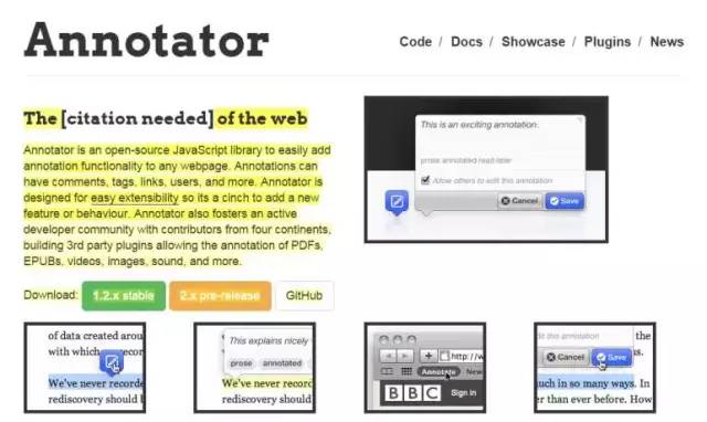 想在网站加注释?Annotator.js帮你在任何网页加注释,而且可以添加评论、标签、链接、用户或者更多不同种类的信息,第三方插件还能帮你在难以搞定的PDF、EPUB、视频、图片、声音甚至更多格式的文件上添加标注。