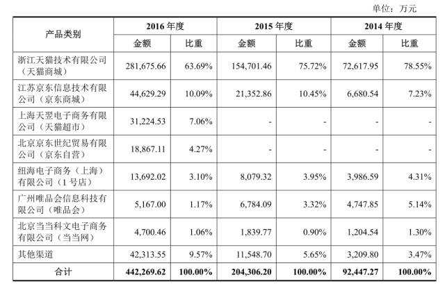 据招股书披露,三只松鼠在2016年实现营收44.23亿元,净利润2.37亿元,一年前这一数据分别为20.43亿元和897.3万元。而在2014年,三只松鼠还处于亏损状态。