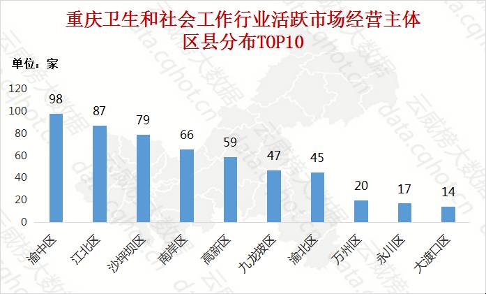 2重庆卫生和社会工作行业活跃市场经营主体“云威榜-重庆互联网大数据分析中心”监测到,2017年2月,重庆卫生和社会工作行业活跃市场经营主体单位数为647家,主要分布在渝中区、江北区、沙坪坝区等都市功能区。