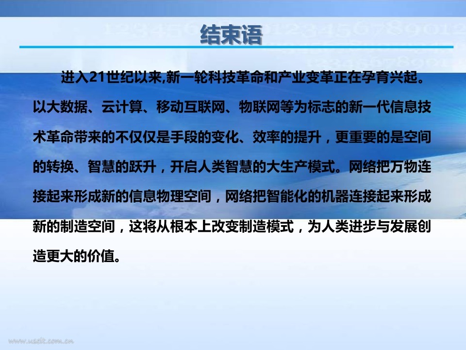 新一轮信息技术革命正在引领工业驶入薪新的发展空间。进入21世纪以来,新一轮科技革命和产业变革正在孕育兴起。其中,以大数据、云计算、移动互联网、物联网等为标志的新一代信息技术革命,被视为新一代科技和产业革命的核心与龙头。无论是产业界还是理论界,一直都在努力探求:作为这一轮科技与产业革命的龙头,信息技术引发产业变革的本质原理到底在哪里;作为集新一代信息技术革命成果大成的互联网,给我国产业发展尤其是工业带来的最深刻的影响究竟是什么?