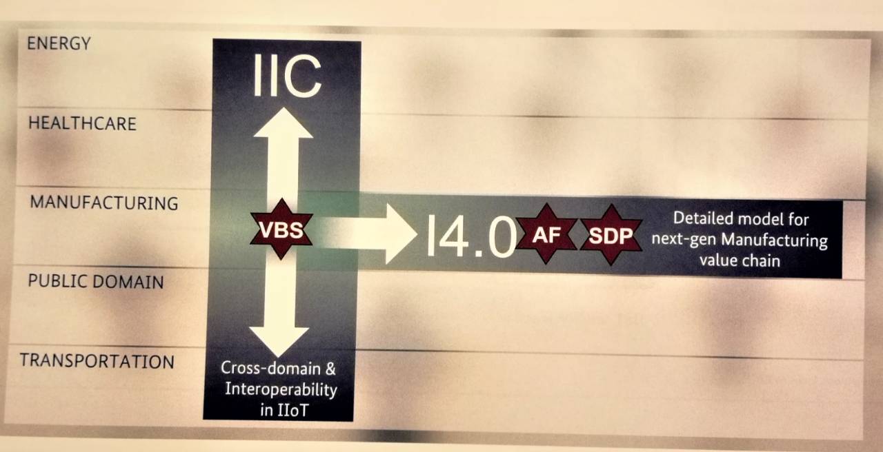 VBS成为二者重要的交互点。通过基于物联网的VBS,工业4.0继续深化与工业互联网联盟IIC的价值流对接。而工业4.0则坚定不移地走向制造价值链的精耕细作,通过自适应工厂AF(adaptable Factory)和无缝动态工程厂房,打造新一代制造的全新模式。