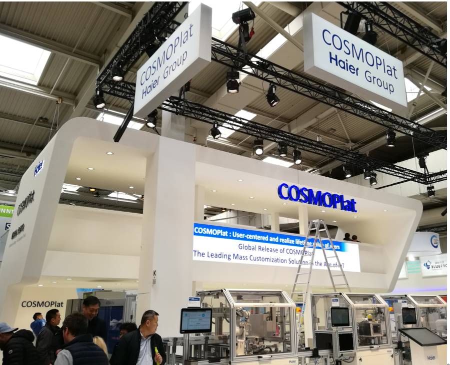 而海尔,则成为70年汉诺威工业博览会上,首次出现的家电制造商。当然,海尔并不打算在这里展示冰箱,而是展示一种物联时代的可复制的生产能力。海尔的COSMOPlat工业互联网平台,成为物联网时代的大规模定制的工厂产线落地的解决方案。