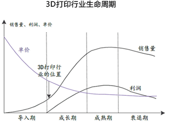 3D打印经过了20年的培育期,龙头公司开始实现显著盈利,市场认可度快速上升,行业收入增长加速。根据典型的产品生命周期理论,技术产品从导入期进入成长期的过程中往往表现出加速增长的特征,判断目前3D打印产业正在进入加速成长期。