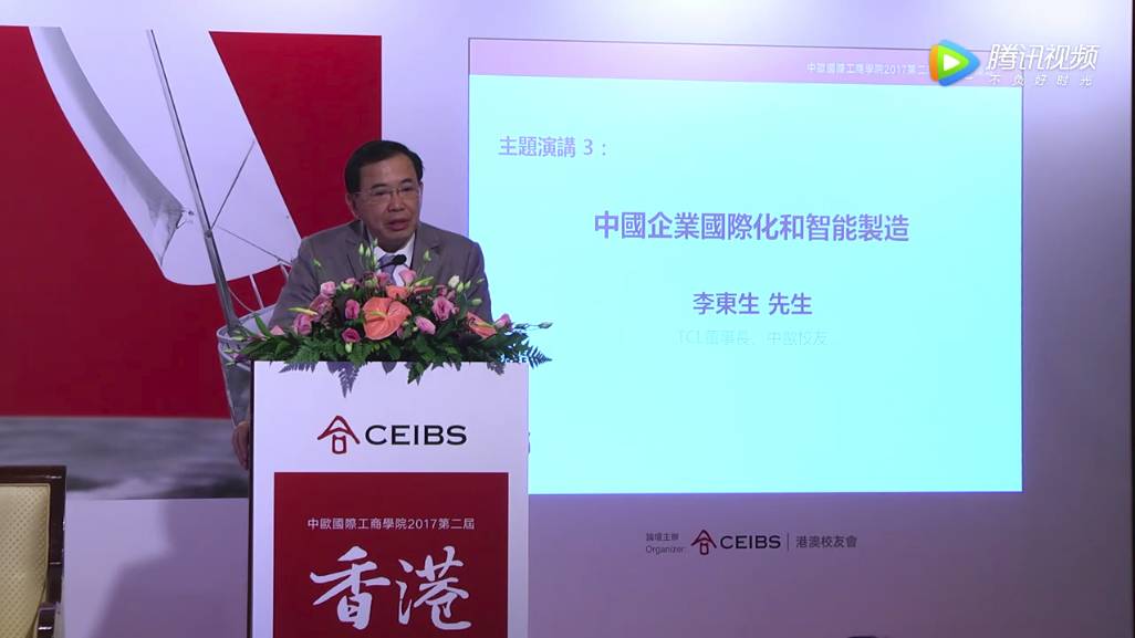 我做企业30年,当董事长20年,TCL是我第一份工作也是唯一的一份工作,我是TCL的创始人。按照会议的要求,我发言的主题是“中国企业国际化与智能制造”,我想讲3点看法。