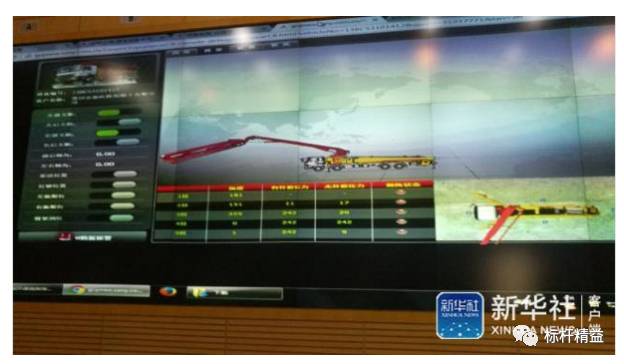 最后,记者来到了三一重工企业控制中心,前面看到的“黑匣子”真正派上了用场。每一台设备的实时位置和运行轨迹在地图上实时显现,工作状态通过三维动画展现,甚至连泵车每节臂架的展开角度,都一清二楚。