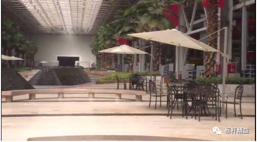 玻璃幕墙的外立面,现代气派的入口,内部有阳光花园、小桥流水,还有桌椅可供休息,……记者看到这些场景,怀疑自己是不是到了一家“假工厂”,都想坐下来先喝杯咖啡。