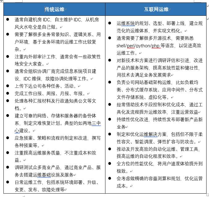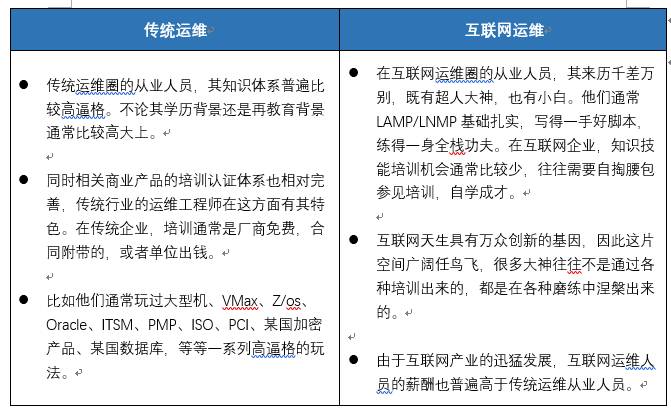 传统运维圈子和互联网运维圈子各有特点,同是运维行业,但也有很多差异之处。关于传统运维与互联网运维的不同差异。