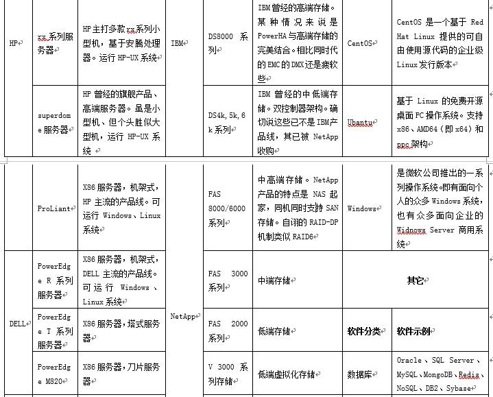 存储则多使用知名品牌的中高端存储阵列、带库等设备;