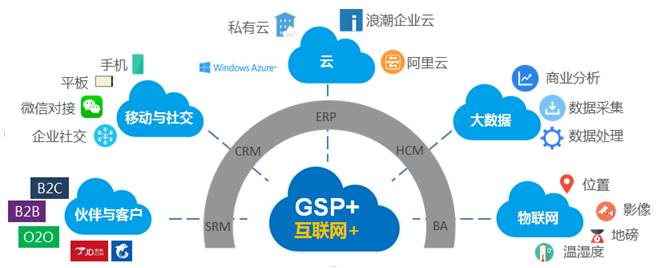 浪潮GSP+云平台集应用的开发、配置、运行、集成于一体,支持私有、公有及混合云部署,支持移动应用开发运行,支持社交平台对接,支持伙伴与客户的连接,支持大数据的采集、处理与分析,支持各种智能设备的集成与物联,通过技术创新和构建开放平台生态圈帮助企业实现业务的敏捷性、全面的互联、应用的智能化,加速企业数字化转型进程。