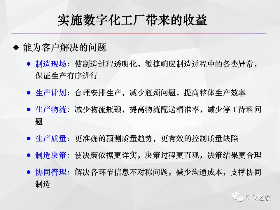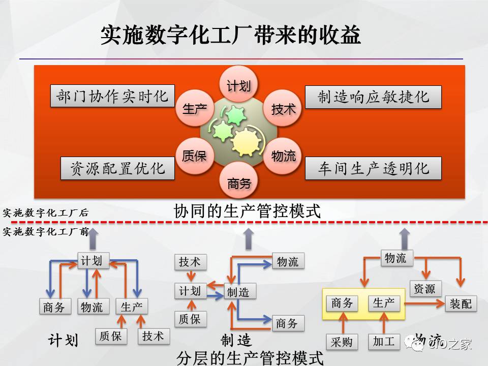数字化工厂是在计算机虚拟环境中,对整个生产过程进行仿真、评估和优化,并进一步扩展到整个产品生命周期的新型生产组织方式。是现代数字制造技术与计算机仿真技术相结合的产物,主要作为沟通产品设计和产品制造之间的桥梁。从定义中可以得出一个结论,数字化工厂的本质是实现信息的集成。