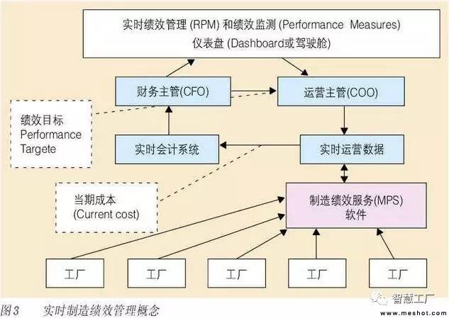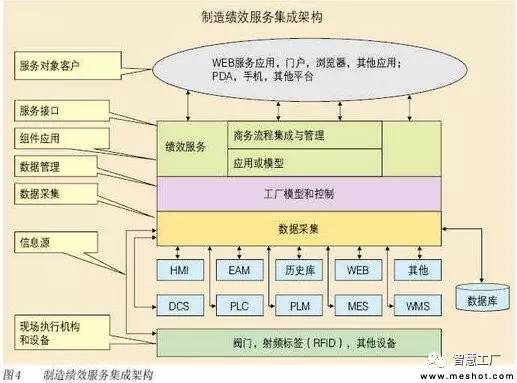 随着信息技术的进步,企业管理的空间、时间范围在扩大,同时管理的细度或粒度又在缩小。从宏观和微观上都要求可视化和实时化,这就需要集成技术。一是MES各模块的集成,二是MES和PCS层面、ERP层面的集成,三是企业内部与企业外部的集成。目前流行的理念和技术是实时绩效管理、制造绩效服务,如图3、4所示。