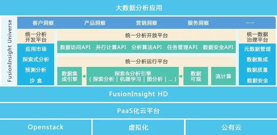 FusionInsight 解决方案FusionInsight 是华为基于 Apache 开源社区软件进行了功能增强的大数据存储、查询和分析的统一平台,除了继承和增强对 HBase、HDFS、MapReduce、YARN 等社区软件的开放能力,华为大数据平台还提供大数据分析应用开发能力,并将这些能力开放给合作伙伴,聚合具备如数据运营、数据所有、数据开发等各种专业能力的玩家,共同打造创新的大数据商业生态。