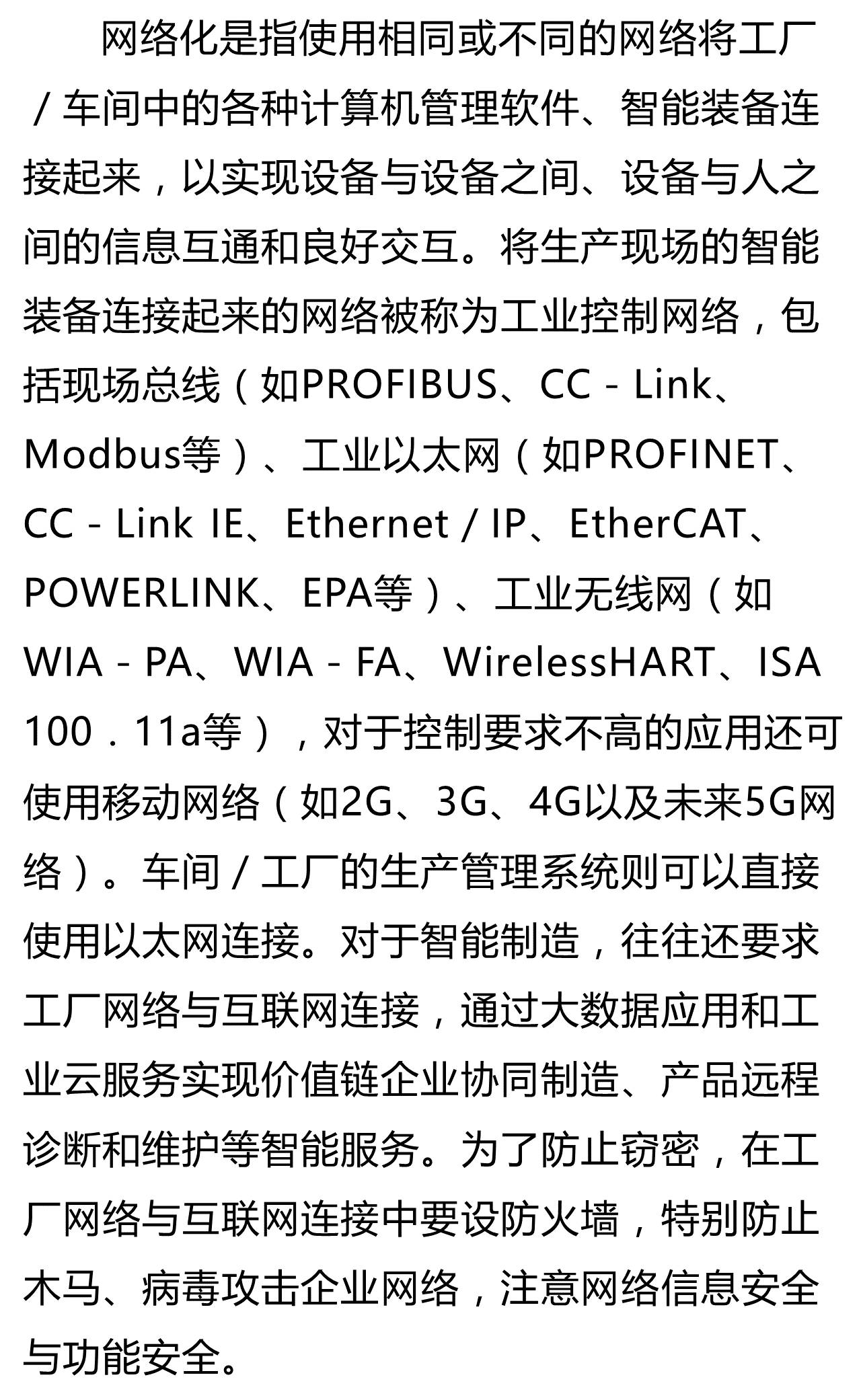 智能工厂/数字化车间互联网络各层次定义的功能以及各种系统、设备在不同层次上的分配如下。