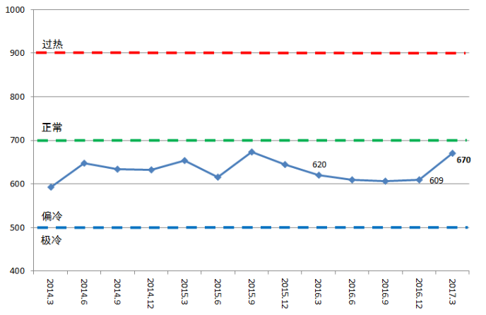 2017年一季度中国造船产能利用监测指数(CCI)为670点,与2016年一季度620点相比,提高50点,同比增长8.1%;与2016年四季度609点相比,提高61点,环比增长10%,指数初现企稳态势,但仍处于偏冷区间。