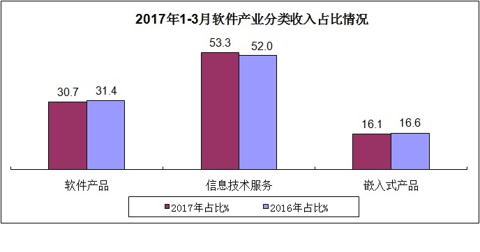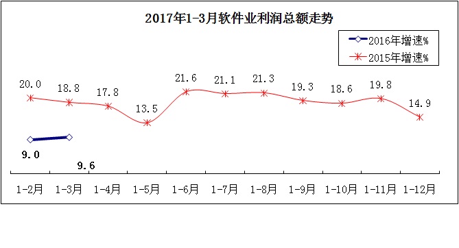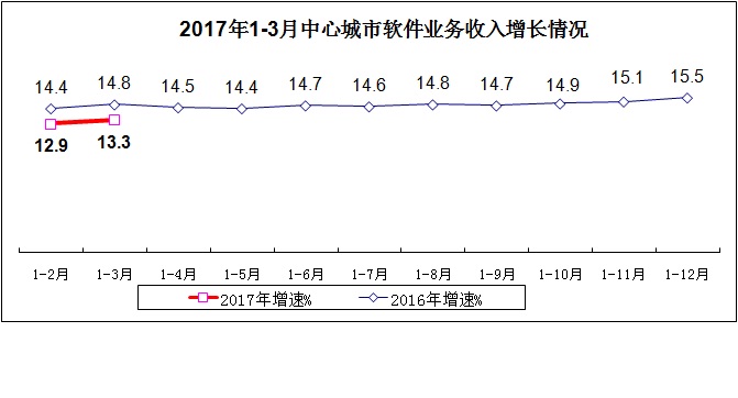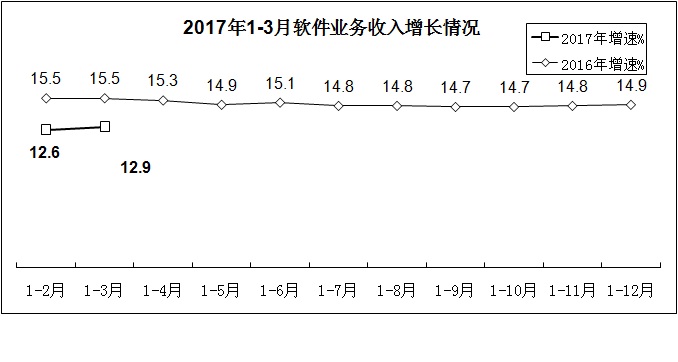 软件业务收入稳中有升。1-3月份,我国软件和信息技术服务业完成软件业务收入11383亿元,同比增长12.9%,增速同比回落2.6个百分点。其中,3月份软件业务收入增长13.3%,增速比前两个月平均增速回升0.7个百分点。