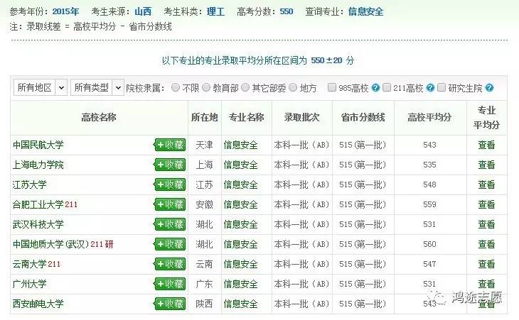 四、录取数据2015年部分高校信息安全专业的录取分数