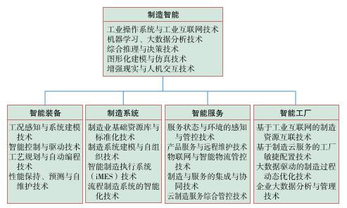 智能制造旨在让制造装备和系统拥有智能,因而智能制造的核心内容是研究制造活动中的信息感知与分析、知识表达与学习、智能决策与执行(感知—学习—决策—执行)。智能制造技术涉及产品全生命周期中的设计、生产、管理和服务等环节的制造活动,其技术体系主要包括制造智能技术、智能制造装备技术、智能制造系统技术、智能制造服务技术。