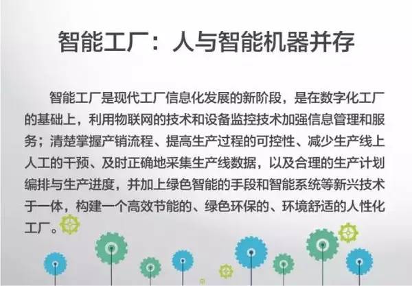 所以,工业4.0并不意味着“机器换人”,而是强调人机协作。而真正的智能化是实现人的提升和企业管理流程的提升。繁重的任务交给机器,而技术工人,则要提升为管理机器的工程师。