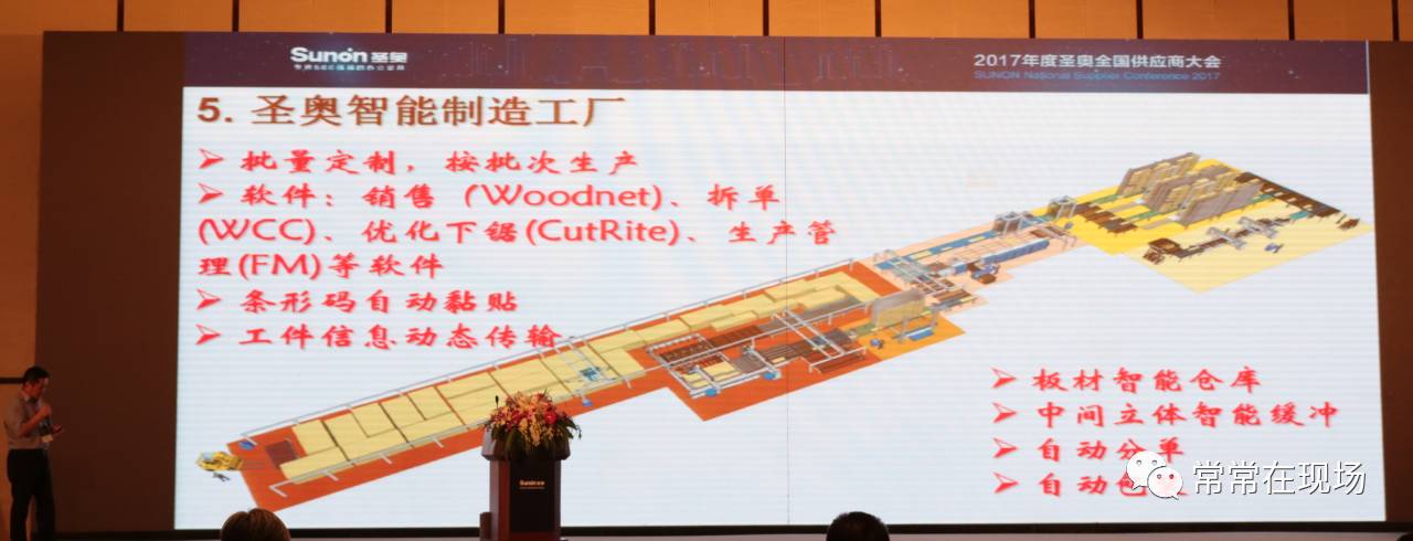 倪良正董事长介绍了定位为花园式智能化的大江东新工厂;董事长助理、原富士康的台干吕锦明先生透露,智能制造的先期工作分“实时数据”与“辅助管理”两步,这与政府倡导的“两化融合”异曲同工;金田豪迈销售总监曹平祥博士向圣奥“家人”展示了中国家具史上首家4.0工厂落户圣奥的蓝图。
