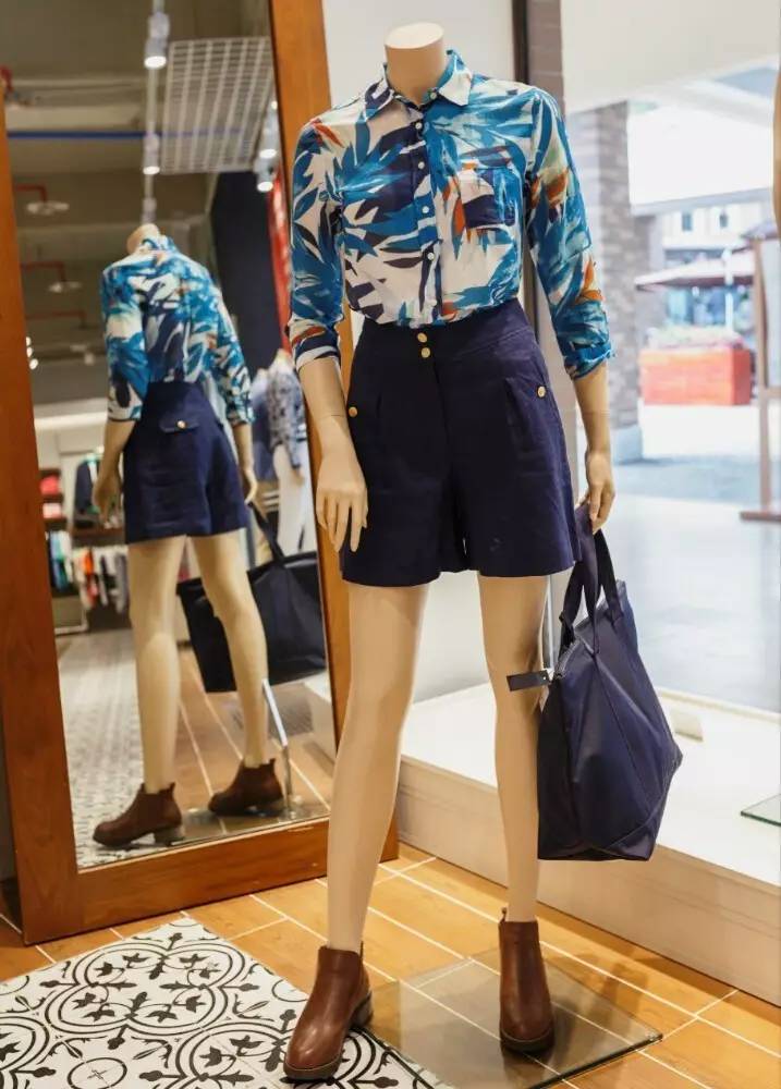 这套就是想要日常上班跳脱出沉闷的穿着的超级范本。大面积的印花更加适合中国人的肤色和风格,小高腰性质的短裤用金色的扣子做点缀,有点睛的作用。至于那只帆布手提包,放电脑放文件放Anything都不是问题咯。