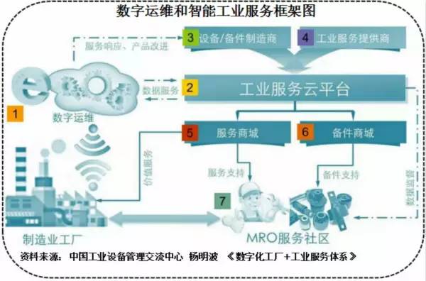 在政府支持下大力发展工业服务社区O2O业务,将工厂的“工业服务资源”通过互联网连接起来,后期风险资本介入,先是备件共享,然后是维修的业务互联,最后形成“设备互联”,从低端往高端发展工业互联网,这就是中国路径,下图就是工业服务产业发展的框架图。