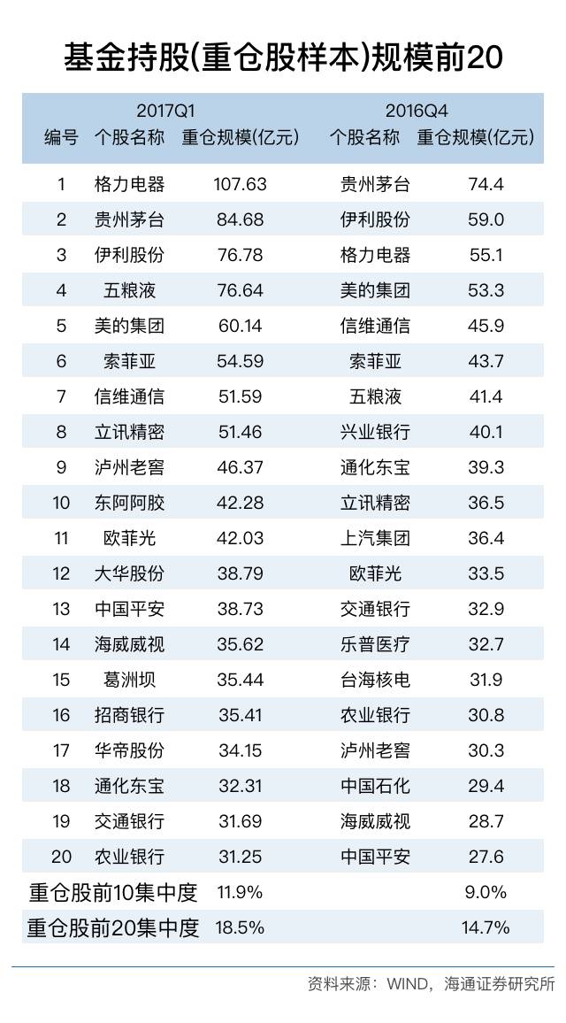 持股特征:集中度上升,格力茅台伊利前三