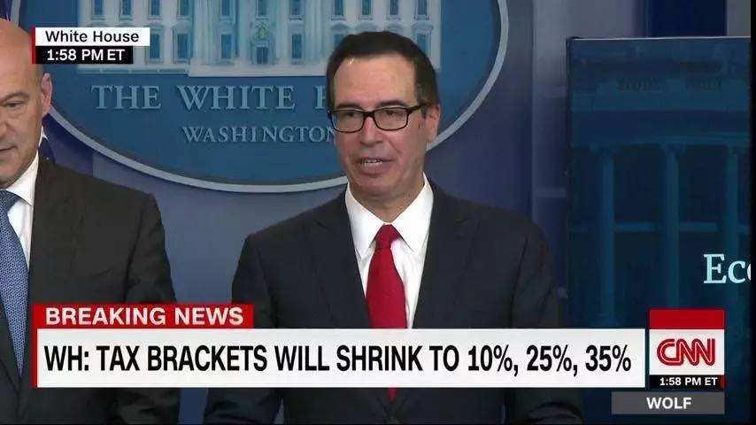 华盛顿时间26日,白宫新闻发布会宣布特朗普政府针对个人和企业的税收改革计划。其中,联邦政府拟将把最高个人所得税税率从39.6%降至35%,将美国企业营业税税率从目前的35%大幅削减至15%。
