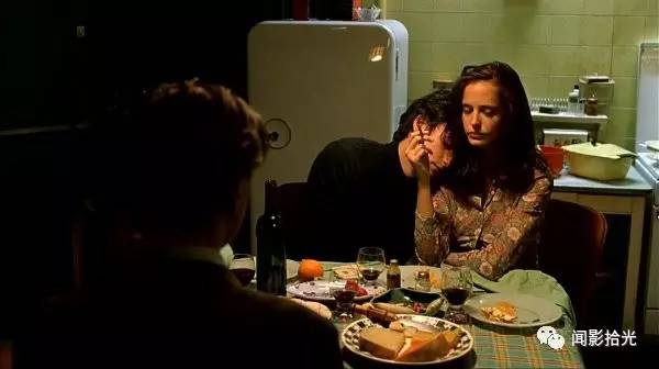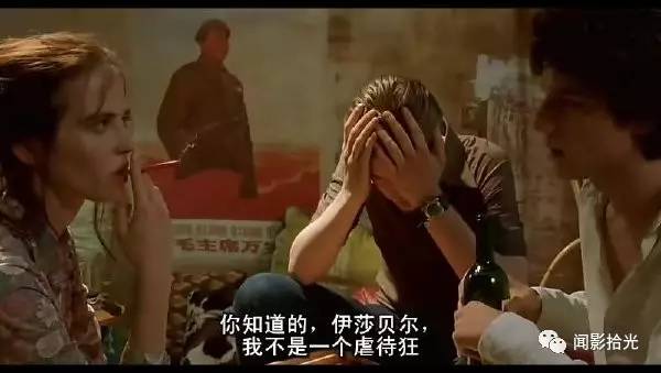 像历史一个片段,春天一首挽歌。很多古色生香的电影片段一直在《戏梦巴黎》中穿插出现,与马修雷奥伊莎的言谈举止重合。三个年轻得像鲜草一样的人,呼啸着穿过卢浮宫(还是别的?我忘了)的大殿,像三匹野马。雷奥和伊莎特意在马修面前关闭大门,又打开,两个人从此就变成了三个。胡问我是否活在电影中,在此回答,我不是,他们才是。