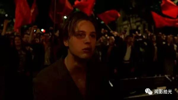 《戏梦巴黎》的基调(光、音乐、人、色彩)是华丽的,马修和伊莎约会,他们在电影院拥吻,走出电影院看着墙上的海报,缠缠绵绵情思无限,他们的身后,街的中央,是被人们砸毁的器物,倚叠如山。他们回头的时候,空中的气味不再奢华,它迅速塌缩,咻的一声逃窜了。