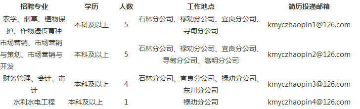 15.【云南】昆明市烟草专卖局2017校园招聘昆明市烟草专卖局(公司)是中国烟草总公司云南省公司的国有全资子公司,下辖14个县级烟草专卖局(分公司)、1个物流分公司,共有在岗员工1700多人。根据企业发展需要,面向社会公开招聘15名应届高校毕业生,现对有关事项公告如下: