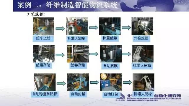 另一个纤维制造智能物流系统。我们通过自动化设备完全替代了人工作业,实现了从产品的上线到发送,全流程的自动化。这个项目企业投资将近1亿,但是经过他们测算,一年通过各方面可以为他们节约成本将近3200万元,基本上三年能收回投资。为创造了很好的经济效益。