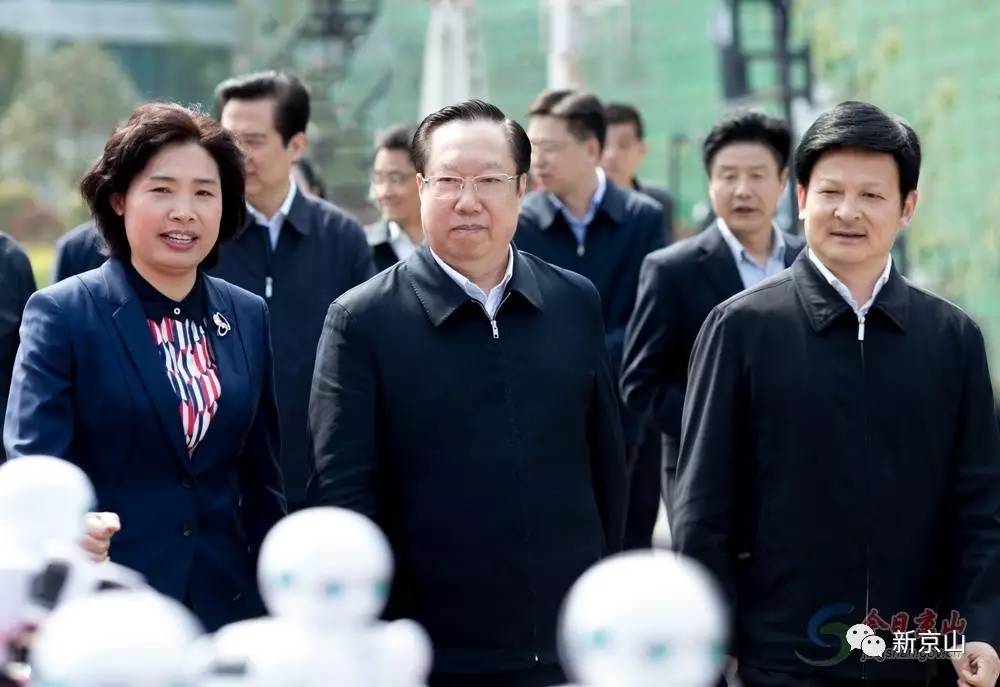 省委副书记、省长王晓东(中),市委副书记、市长张依涛(右),县委书记周志红在智能制造产业园参观