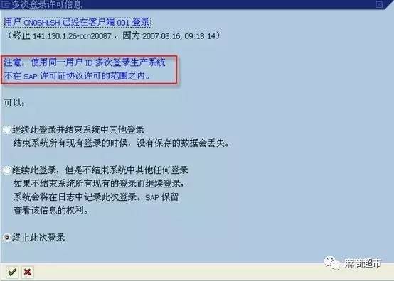 在P04、P12、S04等生产系统中,尽量不要重复登陆。如实在有必要,在第2次登陆完成所需工作后,立即退出系统。C04中不受此限制。