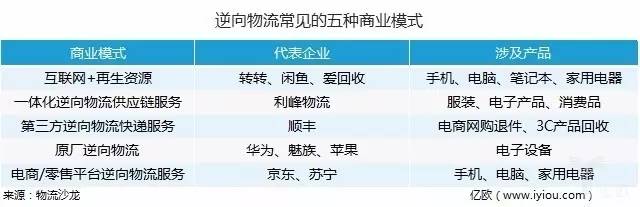 目前市场上已涌现的逆向物流服务商业模式主要有以下五种: