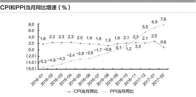 1-2月份,受春节因素和翘尾因素影响,我国CPI同比上涨1.7%,涨幅比上年全年回落0.3个百分点;核心CPI同比上涨2.0%。同期,PPI同比上涨7.3%,上年全年为下降1.4%。
