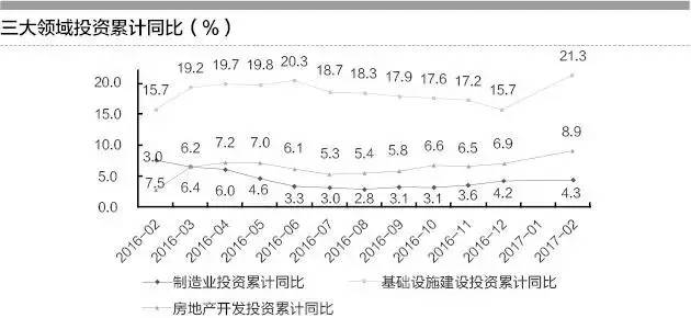 三大领域投资带动作用明显。一是PPI持续上行提升企业投资意愿,由于PPI领先制造业投资两个季度左右,即使2月PPI涨幅达到高点开始回落,制造业投资快速增长也能持续到第三季度,年内制造业投资带动作用将逐步加强;二是伴随PPP项目加速落地,基础设施建设投资将恢复高增速;三是房地产市场维持增长势头。