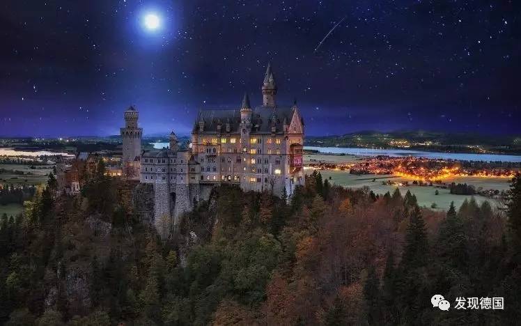 童话般的夜色中,新天鹅城堡闪闪发光。作为巴伐利亚国王路德维希二世的梦,这里正是他的中世纪梦幻城堡。