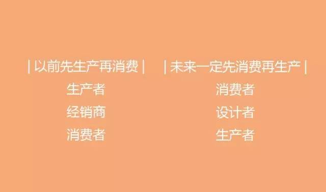 当你有一个想法时,你可以先表达出来,然后在平台上进行展示(这样的平台会越来越多),然后吸引喜欢的人去下单,拿到订单后可以找工厂生产(不用担心量太少,今后的生产一定会精细化和定制化),然后再送到消费者手里。