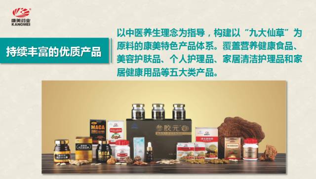 康美产品涵盖营养健康食品、美容护肤品、个人护理品、家居清洁护理品和家居健康用品等五大类。产品品类不断完善,涵盖保健品,日用品、小型厨具等。秉承“康美出品,必属精品”的产品理念。中国民族直销企业中,出产品最多的一定是康美,因为我们有互联网中医药全产业链。