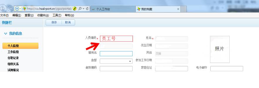 方法一:用浏览器输入访问地址进入门户网站:http://oa.hzairport.cn(如图1),点击“门户系统”,输入用户名、密码,点击“我的档案”进行查询(如图2)。初始用户名及密码,请致电86662321咨询。