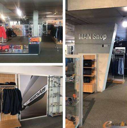 走进MAN参观接待厅,除了MAN在不同时期关键产品的展示外,有意思的是我发现在展厅非常显眼的位置有很多周边产品在销售,这些产品不是重卡的零部件或和卡车相关的产品,而是MAN自有品牌的服装、玩具、户外用品等等。