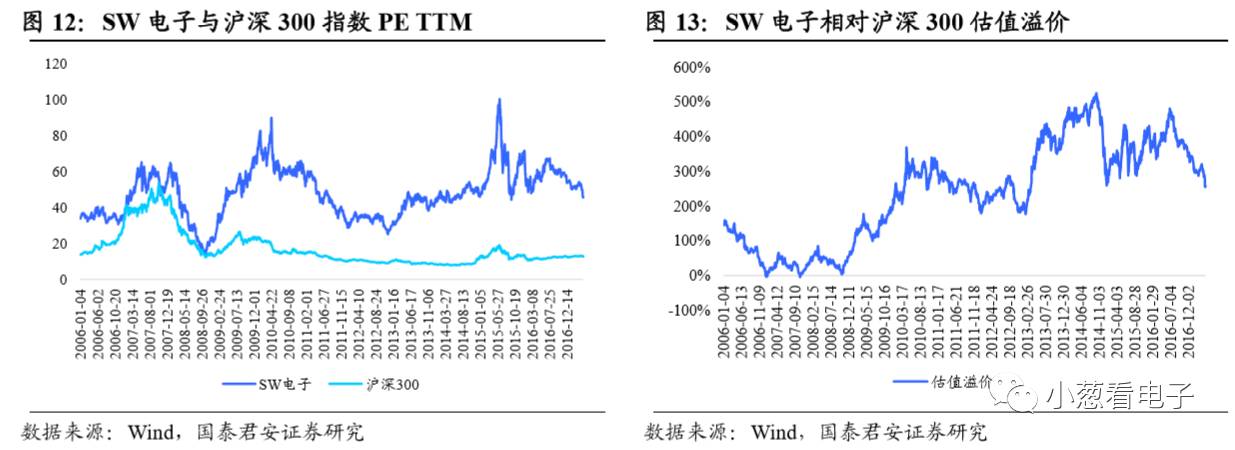 2017年4月28日,SW电子行业PE TTM(整体法,剔除负值)为45.65,较2015年6月12日最高的99.49下跌54.1%,较2008年10月27日的历史最低值13.34高出242.2%。