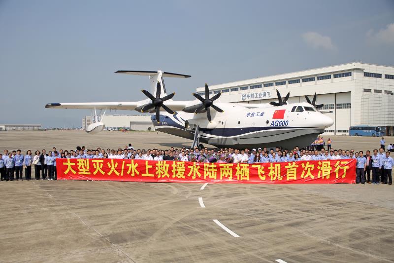 大型水陆两栖飞机是为满足国家应急救援体系建设需要而研制的航空应急救援装备,陆上最大起飞重量53.5吨,巡航速度450千米/小时,最大航程5150千米,可执行森林灭火和水上救援等任务。自2016年底飞机推出总装以来,陆续完成了各系统通电/功能检查、测试改装及调试、机上地面试验、全机共振试验等工作。2017年4月20日,工业和信息化部装备工业司组织专家就研制工作进展进行了检查。此次滑行试验的圆满成功,为接下来的滑行试验及首飞工作奠定了坚实基础。