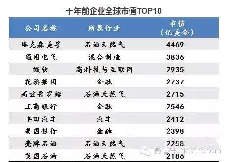新的科技浪潮一直主导着生产力和生产关系的大调整,并不断涌现出新的产业,促进社会进步。十年前,全球市值前10名主要还集中在能源、金融等传统产业。现在已经被高科技与互联网企业占据半壁江山。