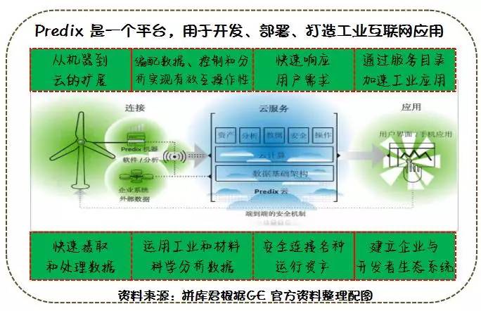 全球的设备种类、品牌繁多,客户需要的是一款面向机器对症下药的个性化机器软件。为此GE 把“Predix”升级为“基于云计算的工业设备应用的操作系统”,支持外部软件开发者编写在 Predix 上运行的程序,比如,这些软件或许可以用来监控油田钻井和风电机组这些设备的健康状况及运行情况,提升性能,降低磨损,同时适应不断变化的环境。
