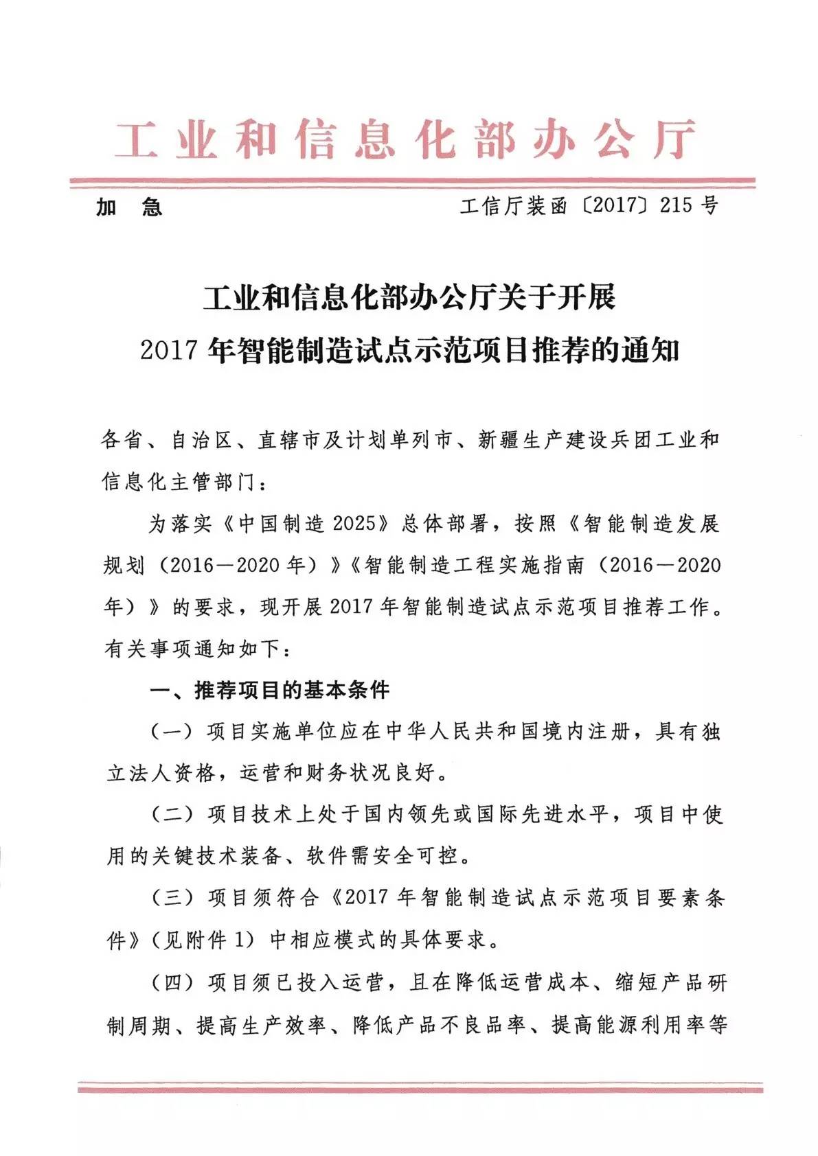 2017 年智能制造试点示范项目要素条件