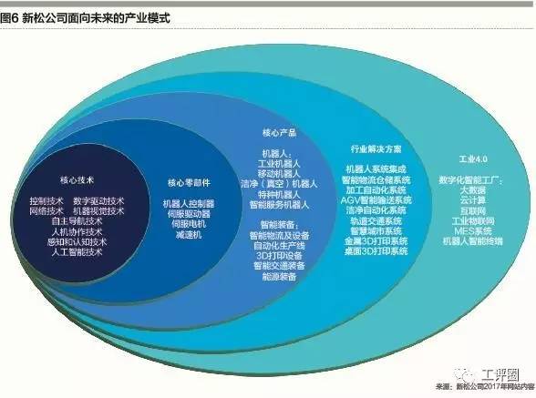 新松公司的技术创新也推动了产业模式的创新,原来单一的工业机器人及自动化设备制造产业模式逐步转向核心技术、核心零部件基础上的机器人产品、智能装备、行业解决方案、工业4.0数字化智能工厂全产业链发展的模式,顺应机器人、智能设备与信息技术融合的行业未来发展趋势。