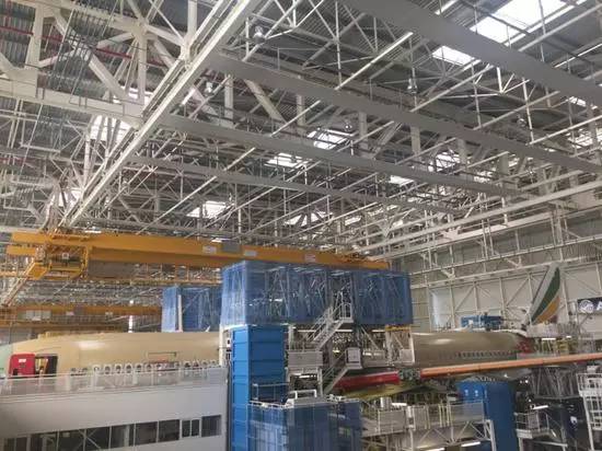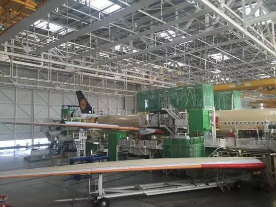 在工厂现场看到的工人并不多,他们一般是一天两班倒,每个工人基本都在固定的工位,而飞机则根据安装的不同步骤在不同的工位移动,工厂里还常常会放一些轻松的音乐。